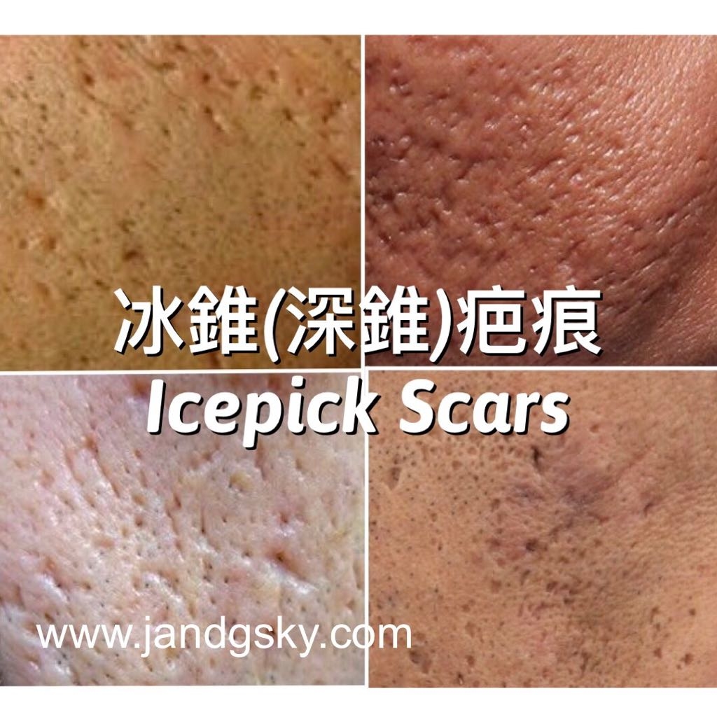 冰錐(深錐)痤瘡(暗瘡)疤痕是深而窄的疤痕。在許多情況下,冰錐(深錐)疤痕類似於皮膚毛孔的空洞。
