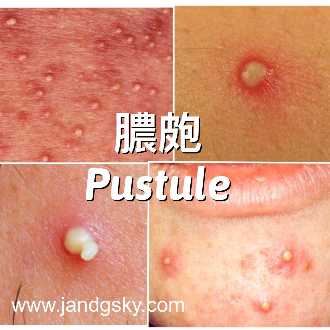 膿皰是最常見的痤瘡(暗瘡)病變類型。 它們通常表現為發紅的圓圈,中心為白色或黃色。 他們發作時膨脹起來,但是痤瘡(暗瘡)患者不應該用雙手觸摸它,並確保他們接觸皮膚的物料是無菌的。