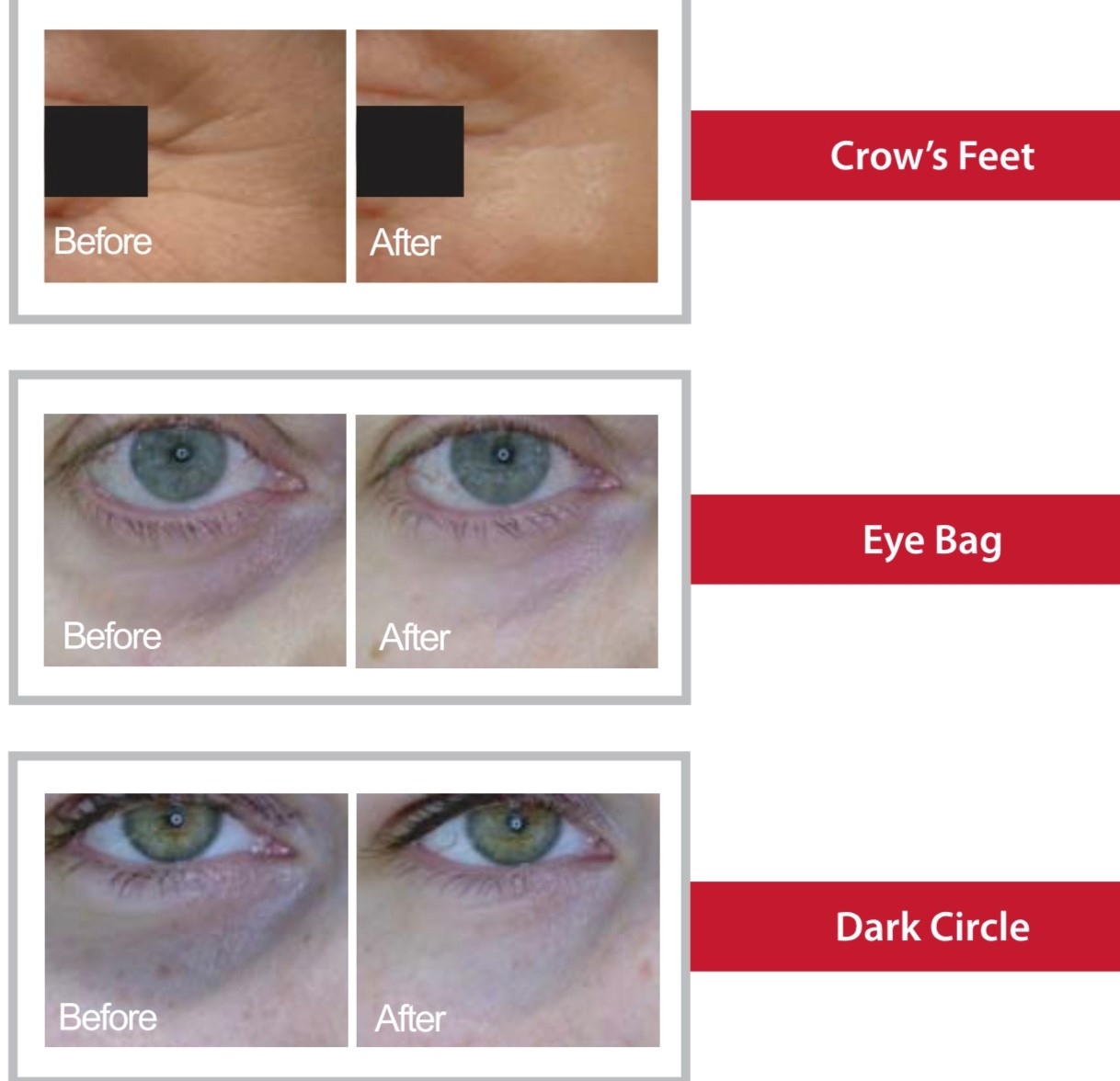 因應眼部紋理及眼部皮膚問題, 先選取合適精華配方或養份, 配合眼滾輛進行激活再生功能, 然後再選取合適精華配方或養份以電孔注滲彷生技術所產生物理反應,增強高效養份到深層肌膚吸收及活化細胞 o 改善眼袋/眼紋/黑眼圈 o